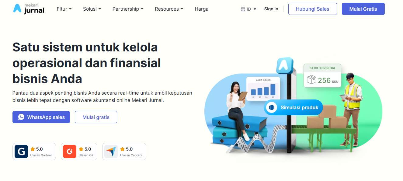 Mekari Jurnal merupakan salah satu penyedia solusi akuntansi dan manajemen stok terkemuka di Indonesia yang dirancang untuk menyatukan operasional gudang dengan laporan keuangan secara otomatis. Keunggulan utamanya terletak pada sinkronisasi data real-time, di mana setiap pergerakan barang langsung tercatat ke dalam neraca dan laporan laba rugi perusahaan tanpa perlu rekonsiliasi manual yang melelahkan. Sistem ini juga memfasilitasi integrasi dengan berbagai bank besar guna memudahkan proses verifikasi pembayaran secara langsung. Fitur inventarisnya sangat komprehensif, mencakup pemantauan stok di banyak lokasi, perhitungan Harga Pokok Penjualan (HPP) otomatis menggunakan metode FIFO atau rata-rata, hingga sistem buffer stock untuk mencegah terjadinya kehabisan stok.
