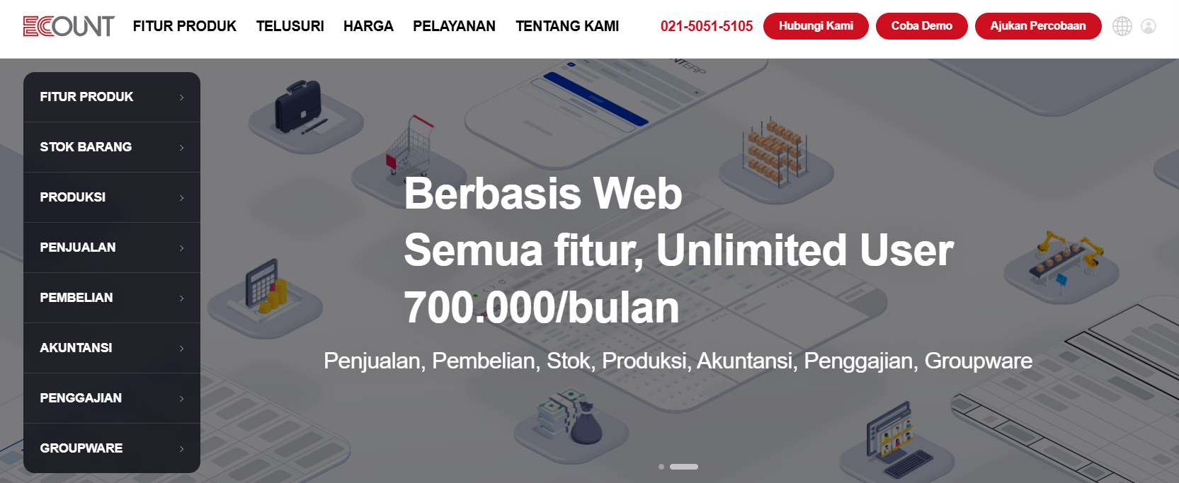 ECOUNT ERP merupakan solusi manajemen bisnis berbasis cloud asal Korea Selatan yang telah diadopsi secara luas oleh perusahaan di Indonesia karena model harganya yang sangat transparan. Berbeda dengan ERP tradisional yang mengenakan biaya per modul atau per kepala, ECOUNT menawarkan akses ke seluruh fiturnya termasuk inventaris, produksi, penjualan, pembelian, hingga akuntansi dan penggajian dalam satu paket lengkap. Fitur inventarisnya sangat mendalam, memungkinkan pelacakan stok di banyak lokasi secara real-time, manajemen barcode, hingga pengelolaan stok opname yang akurat. Salah satu nilai jual utamanya adalah akses pengguna tak terbatas (unlimited users), yang memungkinkan seluruh karyawan dari berbagai departemen berkolaborasi dalam satu sistem tunggal tanpa biaya tambahan. Hal ini menjadikan operasional lebih efisien karena data antar divisi selalu sinkron tanpa risiko biaya tersembunyi.
